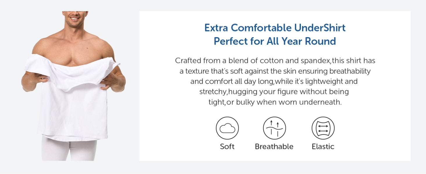 • Spandex is added to the cotton fabric to make the undershirt more stretchy and adapt to every movement