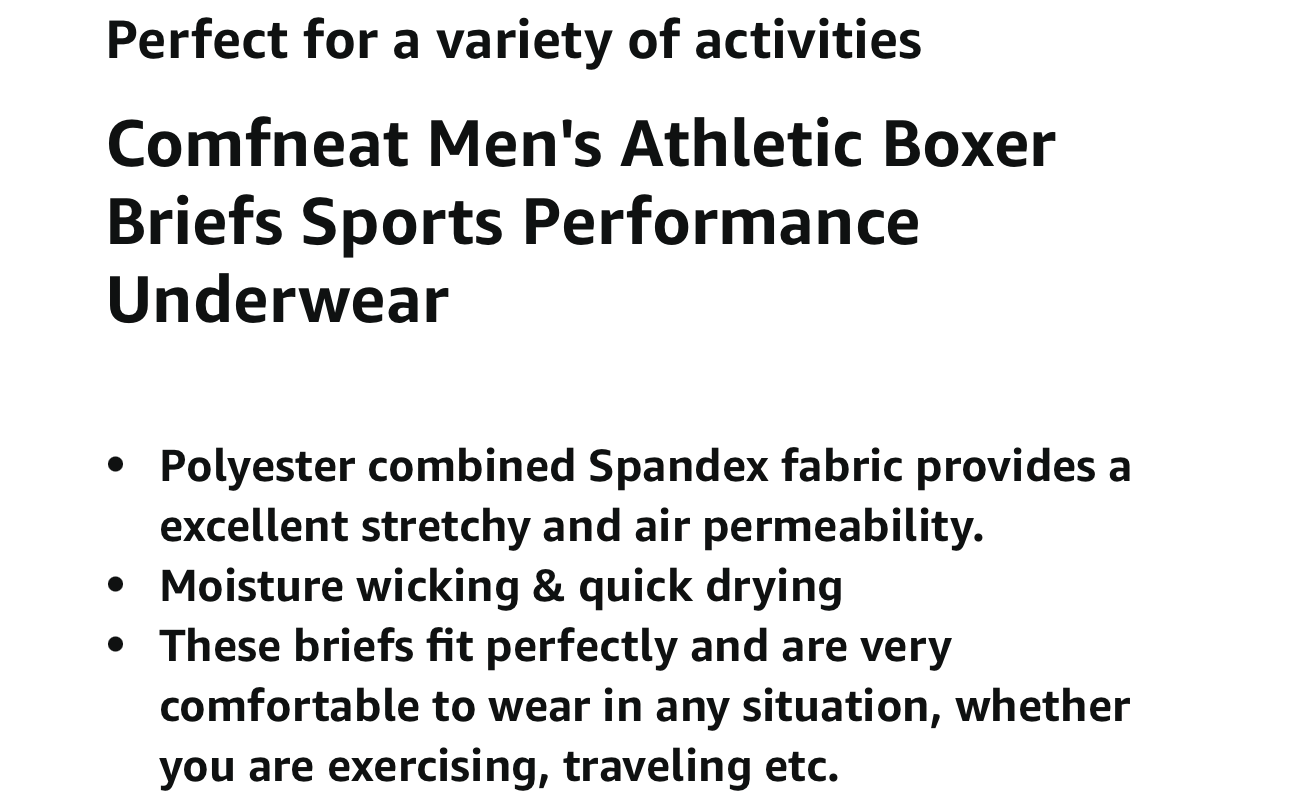 Comfneat Men's 4-Pack Athletic Boxer Briefs Sports Performance Underwear with Fly